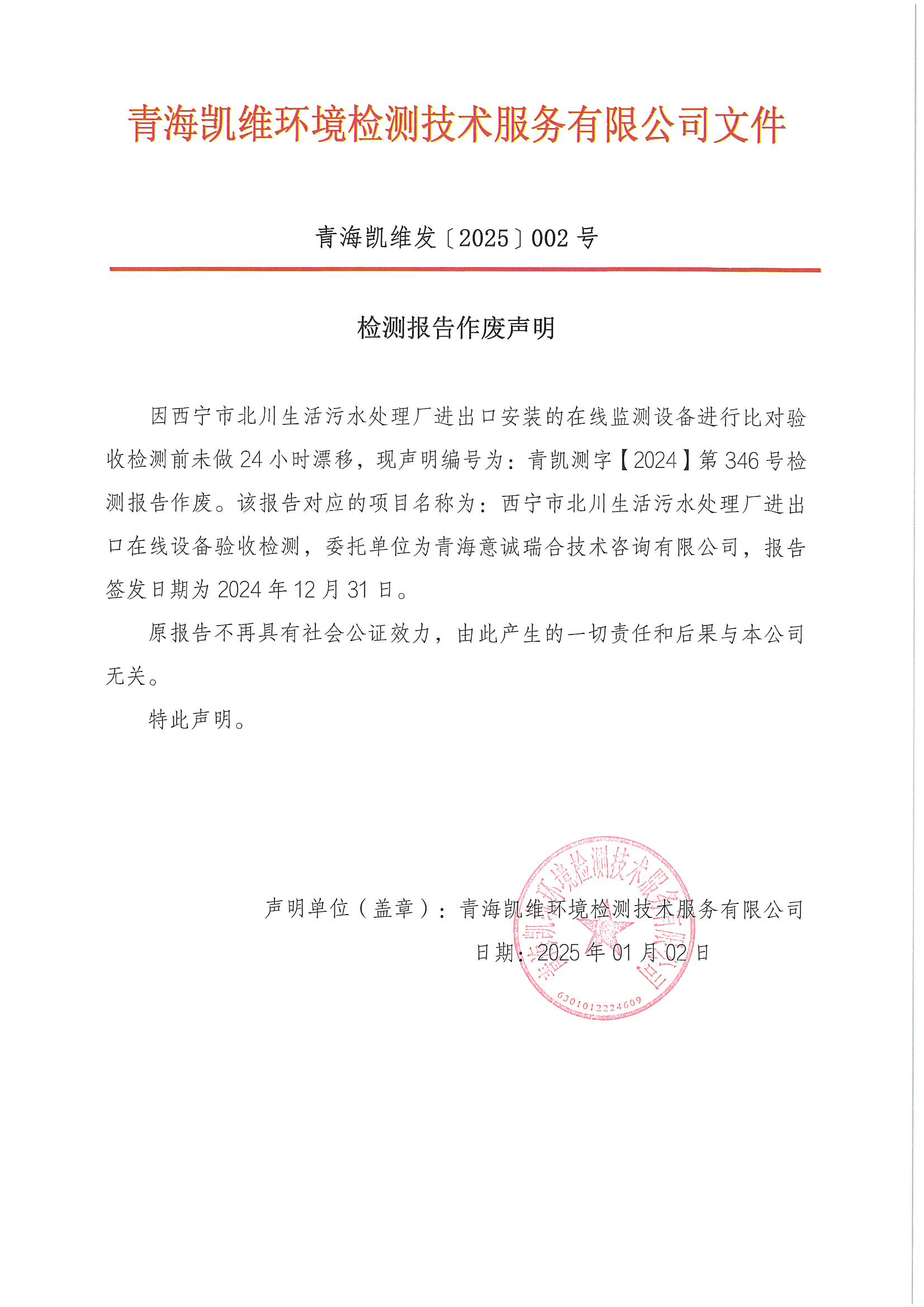 青凱測字【2024】第346號(hào)報(bào)告作廢聲明